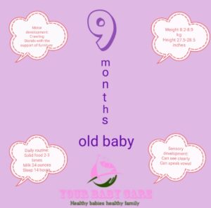 - Playing time: exercises, toys, massage, talk to your baby, introduce finger foods to your baby.